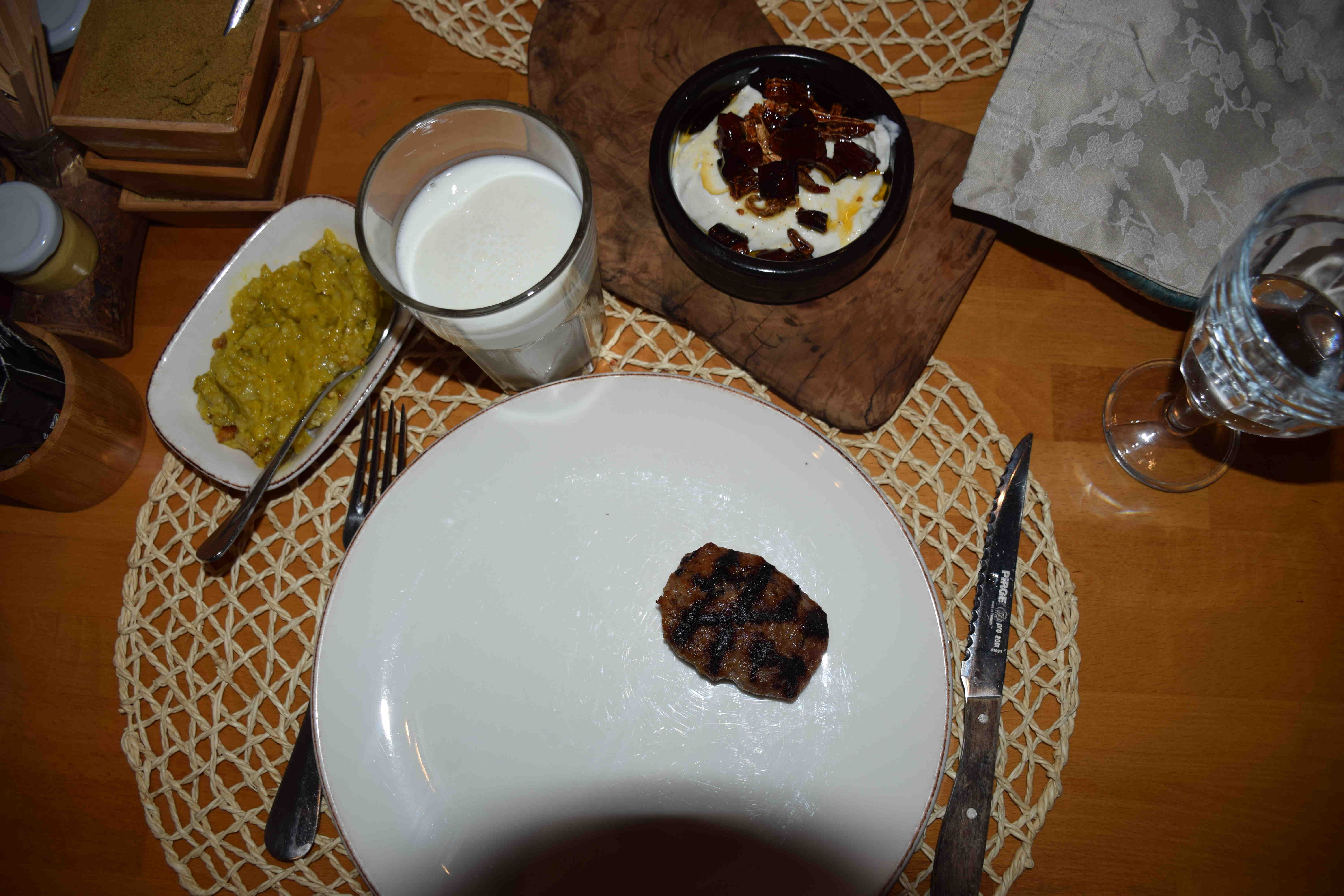 Başlangıç için köfte tercihimiz di, yanındaki salatayla çok lezzetliydi, mezeler den bahsetmek istiyorum, hardallı patlıcan ezmesi bi harikaydı, yani içinde patlıcan barındıran hiçbişey kötü değil bence zaten de, bu bi başka harikaydı, şimdi de mezelerin assolistinden bahsetmek istiyorum